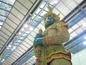 バンコク、スワンナプーム国際空港へ!日本から見たら、異文化の合流地点らしく異国情緒あふれる国際空港、タイは観光立国でもあるので、この辺の設えはハイレベル。到着予定は現地時間で夜の11時ころ、夜食を食べて次の日から検品三昧だぁ。