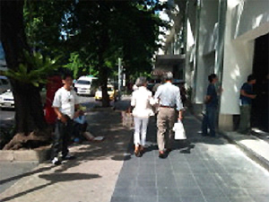 バンコクのシーロム通の道路この道のホテルが私(専務T)の定宿だ、毎朝この道を”てくてく”歩いて宝石の取引所へ通う、取引所と言っても宝石街のビルの中にある事務所の様な施設の中なのでセキュリティー万全の安全ゾーンで仕事できます。ちなみにシーロム通りと聞くと、夜にはナイトマーケットの露店が歩道にびっしりと並ぶイメージがあるかもしれませんが、宝石マーケットは繁華なナイトマーケットのずっとずっと向こうにあるので、この辺は割とビジネス街といったエリア、ちなみにナイトマーケットでは、南国フルーツジュースなどの飲み物屋台やタイ料理?系の食べ物屋台、さらにはお土産系の民芸品からブランドのコピー商品のお店から、何だか解らない雑貨屋さんまで、ありとあらゆるものが売られています(笑)、シーロムの代表格が「パッポン」、ここは外国人の多く集まる所なので、観光スポット化している部分も多く、イメージ的には物凄い種類の色々なモノが売ってる上野の「アメ横」ってところです。価格は言い値で、値切って買うのが常套手段の面白露店がズラリと並びます。大人のお店もかなりの店数が有り(笑)深夜まで賑わっています。