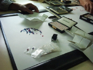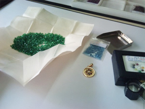 宝石の入ったパーセル(薬袋)を開けた瞬間のパッと見た感じのインスピレーションで、ほとんどの宝石を買うか?買わないか?の第一段階を決定していきます、その後、宝石の形、色の濃淡と色ムラ、ルーペなどの拡大鏡を使って内包物や傷などのチェックをします。同時に本物かどうか?もチェックします。内包物の拡大検査では大まかな産地についても看破していきます。宝石屋の仕事っぽいですね、整理しますと、宝石種、処理の有無、原産地、サイズ(カラット)、形、色、濃淡、この辺を考えながら、パッと見た感じが綺麗だ!と感じるかどうか?が一番に大切なポイント、これを頼りにどんどんチェックしていきます。