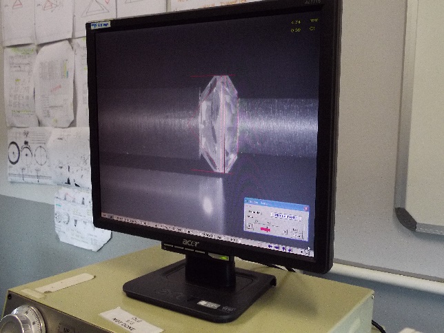 現在のブルーティングマシーン、最新のダイヤモンドの研磨ではガードルを決めることでベースサイズを決めて、ベースサイズを元にテーブル径を決めてソーイングしていく流れなので、このブルーティングはダイヤモンドカットにおいて最初に施される加工なのです。